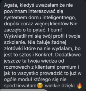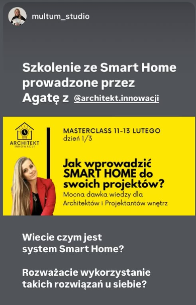 Mimo tych obaw zdecydowała się na udział w moim szkoleniu Smart Home dla architektów. Efekt?